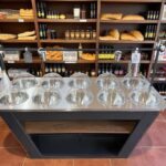 Im unteren Teil des Tisches befindet sich ein durchdachtes Regalsystem. Dort lassen sich Beutel, Olivenflaschen oder weiteres Zubehör griffbereit und ordentlich verstauen – ein praktisches Detail, das den Arbeitsalltag erleichtert.