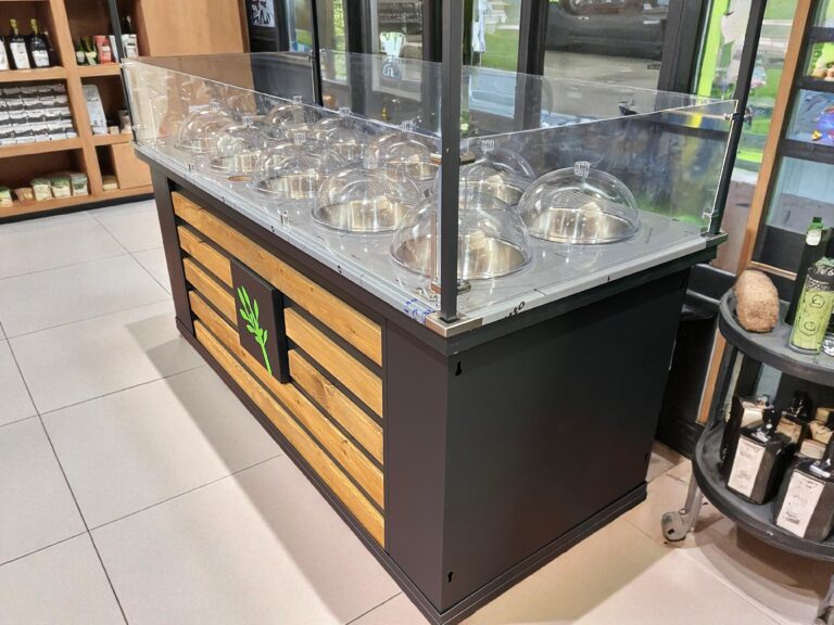 Zeytin dükkanları, marketler ve şarküteriler için özel olarak tasarlanan Çatılı Tekerlekli Zeytin Tezgahı, hem estetik hem de fonksiyonel yapısıyla satış alanlarınıza profesyonel bir görünüm kazandırır.