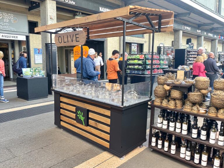 Çatılı Tekerlekli Zeytin Tezgahı: Şıklık, Hijyen ve Pratiklik Bir Arada